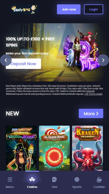 Fruity King Casino は Microgaming, Net Entertainment, Playtech, 1x2gaming, Barcrest, Big Time Gaming, ELK Studios, Evolution Gaming, EYECON, lightningboxgames, Novomatic, Play'n GO, Quickspin, Rabcat, Thunderkick, Wazdan, Pragmatic Play, Nolimit City, Red Tiger Gaming, Spinomenal, SYNOT Games, Skywind, Triple Edge Studios, Northern Lights Gaming, Stormcraft Studios, Switch Studios, All41 Studios, Gluck Games, Gameburger Studios, Pulse 8 Studios, Slot Factory, Neon Valley Studios, Shuffle Master, SpinPlay Games, Real Dealer Studios, GONG Gaming, On Air Entertainment, Buck Stakes Entertainment, Games Global, Ash Gaming, Blueprint Gaming, Greentube, NYX Interactive, ProgressPlay, Tom Horn Gaming, WMS, Inspired Gaming, SG Interactive, Red7Mobile, CORE Gaming, Scientific Games, Reel Time Gaming, BF Games, Iron Dog Studio, Old Skool Studios, Foxium, Betdigital, Just For The Win, PearFiction Studios, Wild Streak Gaming, Slingshot Studios, Fortune Factory Studios, AvatarUX, Gamevy, Crazy Tooth Studio, ReelPlay, Alchemy Gaming, Rarestone Gaming, Black Pudding Games, Snowborn Games, Hacksaw Gaming, Gold Coin Studios, Bang Bang Games, Half Pixel Studios, Aurum Signature Studios, Lucksome Gaming, Area Vegas, Wishbone Games, Spribe, Circular Arrow, HammerTime Games, INO Games, Nailed It! Games, Neko Games, Reel Kingdom, Oros Gaming and Light & Wonderによって運営されており、そのゲームはインスタント プレイの Web ベース プラットフォームを通じて提供されます。