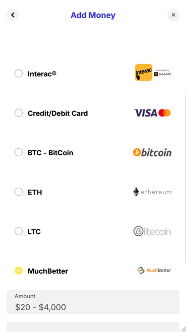 カジノのキャッシャーは、暗号通貨決済オプションと、クレジットカードやデビットカード、 Revolut 、Skrill、Netellerなどの電子ウォレット、その他のオンライン決済オプションを含む一般的な決済方法をサポートしています。対応通貨に関しては、ビットコイン、イーサリアム、ライトコインに加え、カジノプレイヤーはカナダドルとユーロで入出金を行うことができます。