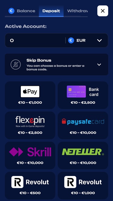 Fugu Casinoでは、Visa、銀行振込、 Mastercard 、 Apple Pay 、 MiFinity 、 MuchBetter 、Neteller、Skrill、 Paysafecardといった人気の決済方法をはじめ、カジノ残高への入金・出金にご利用いただける様々な決済方法をご用意しております。さらに、ビットコイン、ビットコインキャッシュ、ドージコイン、イーサリアム、ライトコイン、ソラナ、トンコイン、トロン、 USDコイン、テザー、リップルなど、様々な暗号通貨での資金管理も可能です。