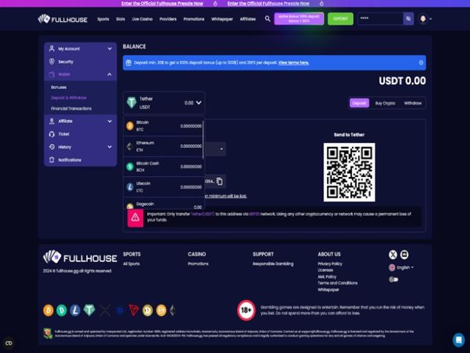暗号カジノゲームに興味がある場合は、 Fullhouse オリジナルや、Plinko、Aviator、Sweet Bonanza、Limbo、Gates of Olympus、Sugar Rush、Mines、Le Bandit、Rich Wilde and the Tome of Insanity、Solar Queen、Trading Dice、Fullhouse Live Roulette、Hippodrome、Fullhouse Live Tombola、Marbles、Dice などの人気タイトルをぜひチェックしてください。オペレーターは、プレイヤーが業界の最新のゲームやトレンドにアクセスできるように努めています。