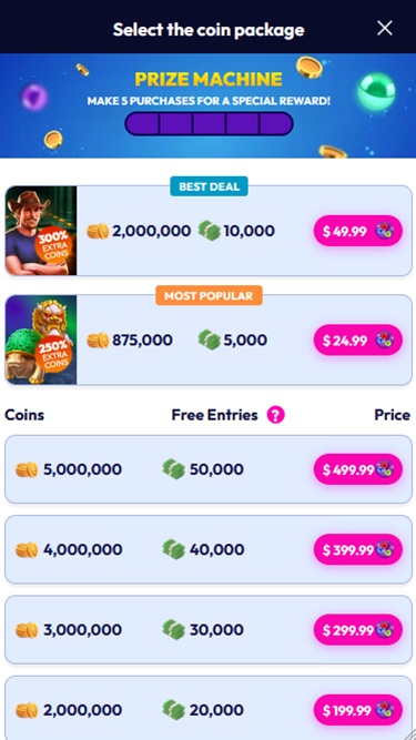 同ブランドは、定期的なプロモーションイベント、日替わり賞品、プロモーションバンドル、そして革新的なレースも開催しています。これらのレースでは、プレイヤーが期間限定イベントで大量のトーナメントコインを競い合います。プロモーションに参加する前に、すべての利用規約を必ずお読みください。