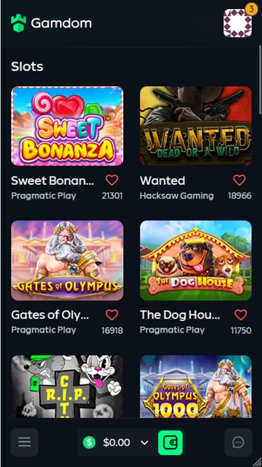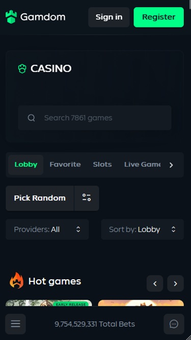 カジノセクションには、スロット、テーブルゲーム、ライブカジノゲームが含まれます。ライブラリは膨大で、一流のタイトルが満載です。
