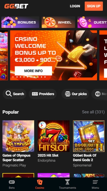 GGbetカジノでは、入会特典に加え、定期的に利用できるお得なオファーや、魅力的な賞品が当たる限定トーナメントもご用意しています。他のカジノコミュニティメンバーと競い合いながら運試しをするのが好きなら、GGbetカジノで楽しい時間を過ごす方法かもしれません。