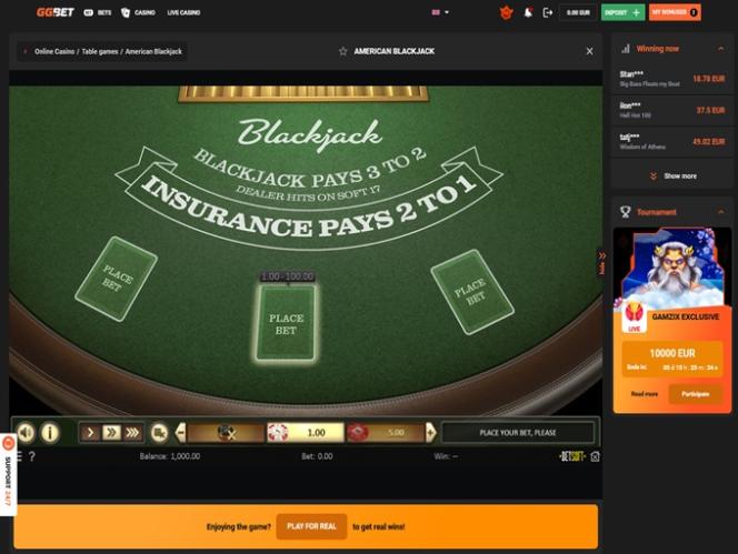 GGbet Casino Blackjack (Net Entertainment)拡大