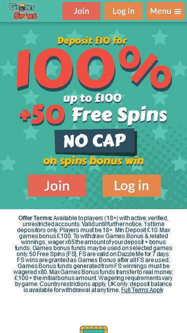 Giant Spins Casinoは、2018年に設立され、Cassava Enterprisesによって運営されているオンラインベッティングサイトです。もしこのサイトに見覚えがあるとしたら、それには理由があります。このサイトは当初Winnerooという名前でしたが、2018年にCrystal Spinsにブランド名が変更され、さらに同年にGiant Spinsへと名称が変更されました。つまり、他の2つのサイトとほぼ同じウェブサイトです。つまり、充実したVIP制度、優れたモバイル互換性、そしてeCOGRA認証を受けた公正なゲームが楽しめるということです。