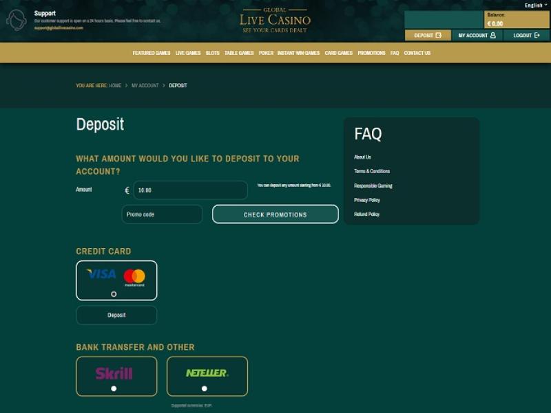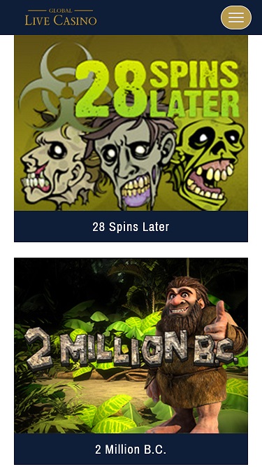 Global Live Casinoは Microgaming, BetSoft, Play'n GO, Quickspin, Endorphina, PlayPearls, Red Tiger Gaming, Spinomenal, Inbet Games, Fugaso, Games Global and We Are Casinoを採用しており、ゲームはインスタントプレイのウェブプラットフォームを通じて提供されます。インターネットブラウザからゲームをプレイできます。スマートフォンやタブレットでプレイしたい方には、モバイルカジノもご利用いただけます。