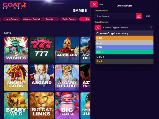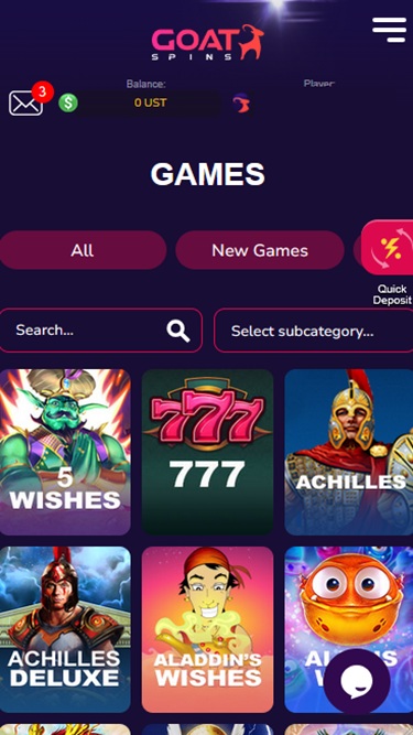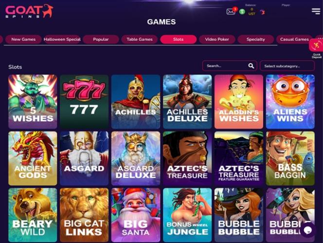 このウェブサイトは興味深いテーマを採用しており、ブランドのビジュアルアイデンティティは綿密に練り上げられています。美しく鮮やかなアバター(論理的にはヤギ)が、魅力的なボーナスチャンスと素晴らしいゲームコレクションであなたを歓迎します。