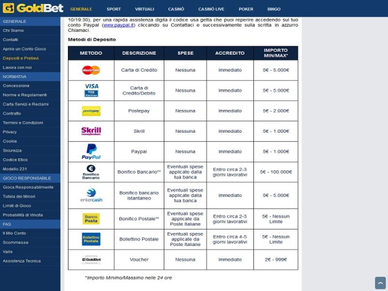 での銀行オプション GoldBet Casino