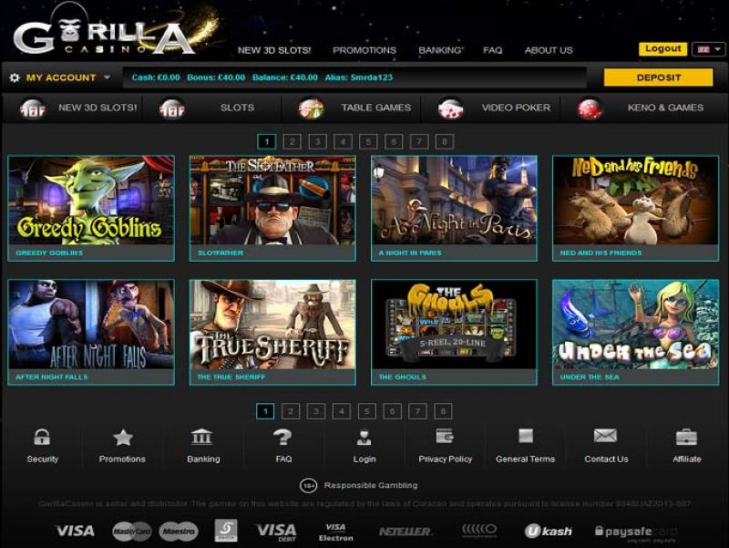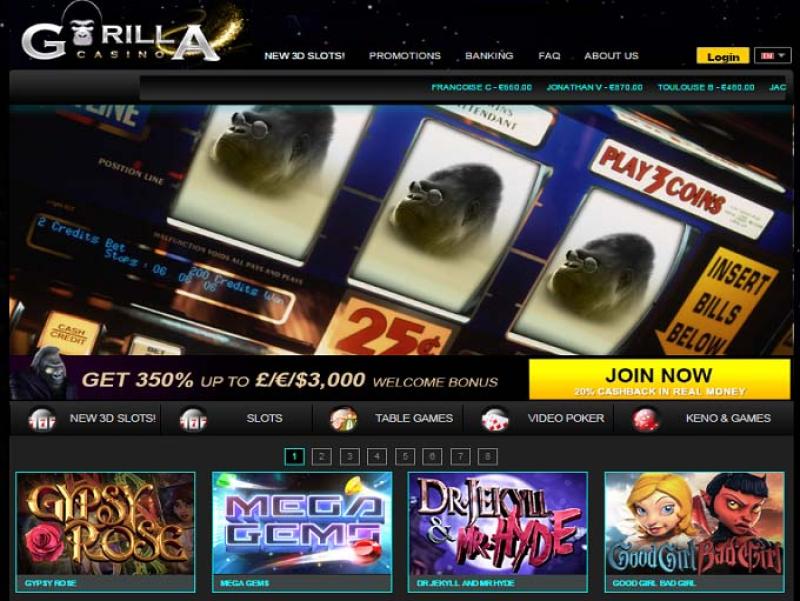 Gorilla Casino は Multi Slot Casinos, OpenBet and Parlay Entertainmentを搭載しており、Web ブラウザで直接ゲームをプレイできます。での銀行オプション Gorilla Casino