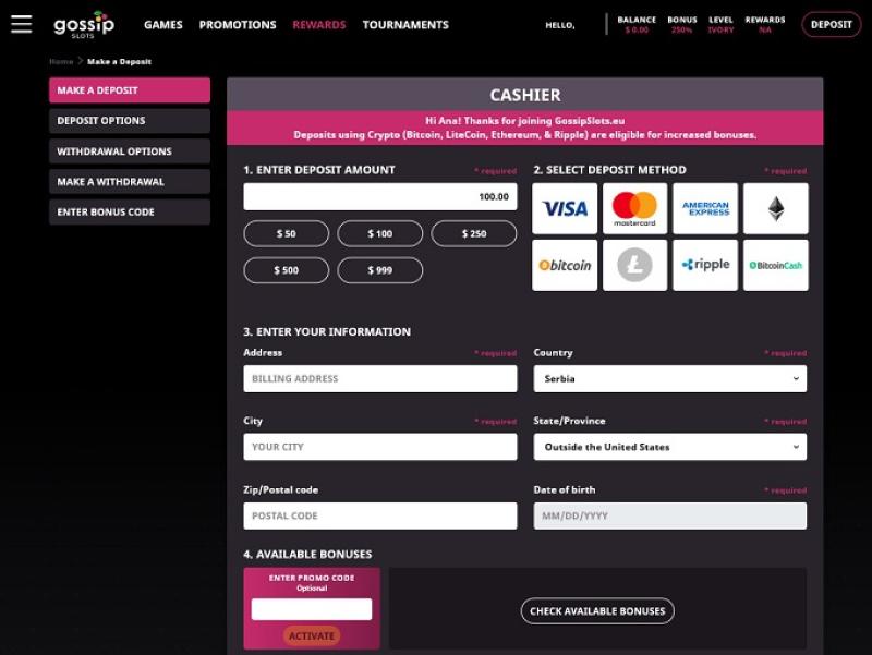 Gossip Slotsは2013年に仮想の扉を開き、Drake Casinoの姉妹サイトとして機能しています。名前の変更とページデザインの違いを除けば、Gossip SlotsはDrake Casinoと非常に似ており、ゲームの種類は同一で、決済方法やカスタマーサポートも似ています。