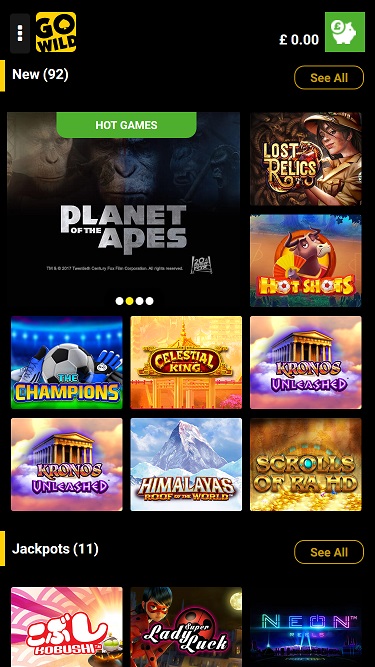 GoWild Casinoは Microgaming, Net Entertainment, Playtech, BetSoft, 1x2gaming, iSoftBet, lightningboxgames, Oryx, Play'n GO, playson, Rabcat, Yggdrasil, Endorphina, Wazdan, Realistic Games, Booming Games, Pragmatic Play, Nolimit City, Red Tiger Gaming, Red Rake Gaming, Fantasma Games, Kalamba, Triple Edge Studios, Stormcraft Studios, Switch Studios, Electric Elephant Games, All41 Studios, Gameburger Studios, Pulse 8 Studios, Neon Valley Studios, Golden Rock Studios, SpinPlay Games, Games Global, Amusnet Interactive, 2by2 Gaming, Ainsworth, Tom Horn Gaming, Gamomat, Authentic Gaming, Iron Dog Studio, Foxium, Just For The Win, Slingshot Studios, Golden Hero, Fortune Factory Studios, Gamevy, Crazy Tooth Studio, Snowborn Games and Half Pixel Studiosを採用しており、プレイヤーは数百ものゲームにアクセスできます。豊富なゲームライブラリは、Microgamingと配信契約を結んだ複数の小規模開発会社を擁するQuickfireプラットフォームによるものです。