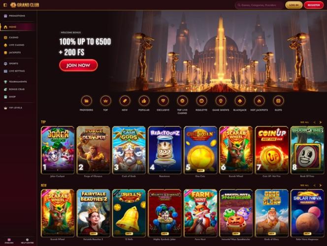 Grand Club Casinoはフィリピン政府の規制とライセンスを受けています。初めてウェブサイトにアクセスすると、ブランド名にふさわしい、考え抜かれた美しい空間がプレイヤーを迎えます。すべてが壮大で贅沢な雰囲気を醸し出し、魅力的な金色のカラーパレットが、まるで特別なクラブの一員になったかのような気分にさせてくれます。