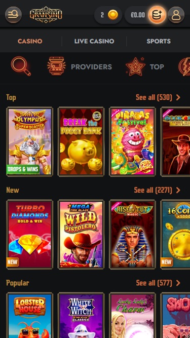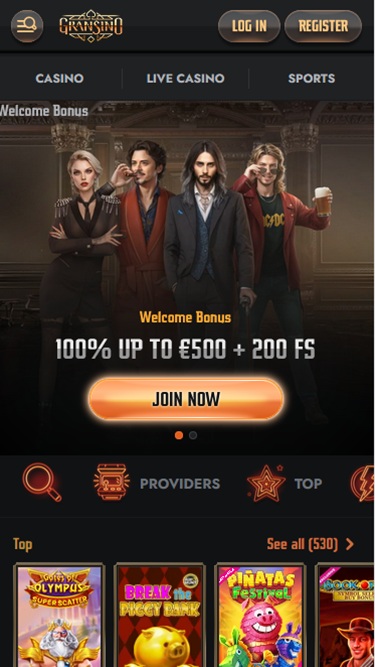 一見すると、このカジノは実に素敵な雰囲気を提供しているという印象を受けます。音楽好きのプレイヤーは特にこのオンラインカジノを気に入るでしょう。なぜなら、音楽はGransinoのメインテーマだからです。ホームページは、ギャンブラーの皆様にきっと気に入っていただける、美しく仕上げられたグラフィックとディテールが特徴です。魅力的なアイコンに加え、プロモーションバナーやスライド、そしてカジノの特典に関する役立つページやセクションも多数用意されています。フッターセクションもぜひご覧ください。カジノのプロモーション、トーナメント、ウィークリーチャレンジ、ロイヤルティプログラム、決済オプションなどについてご案内しています。