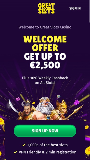 さて、標準的なプロモーションやボーナスに関して言えば、Great Slots Casino は最も多様な特典を提供しているとは言えませんが、利用可能な特典は間違いなく利用する価値があります。まず第一に、新規プレイヤーは全員、複数の入金マッチボーナスを含む魅力的なウェルカムパッケージを申請するよう促される点にご留意ください。