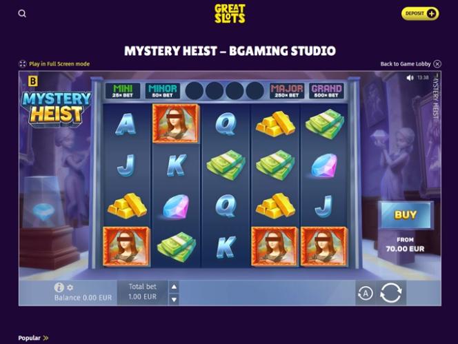 での銀行オプション Great Slots Casino