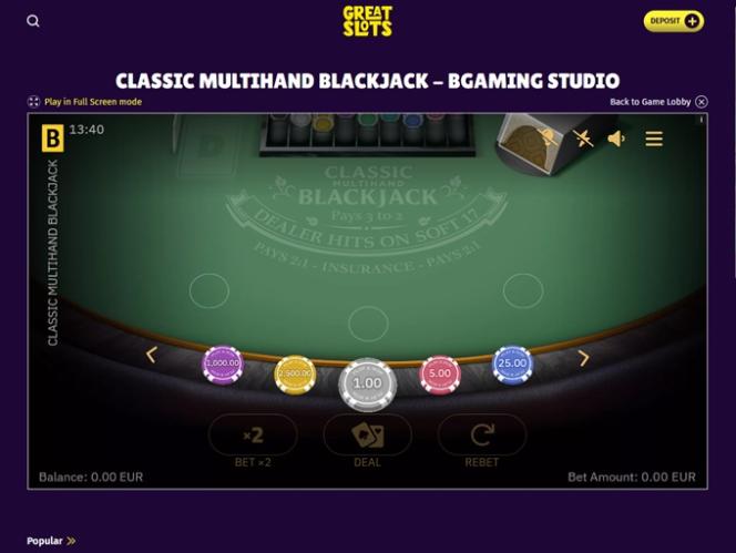 Great Slots Casino Blackjack (BetSoft)拡大