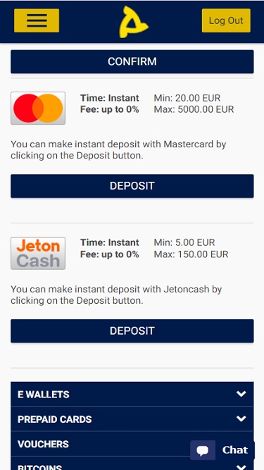 このオンラインカジノはユーロでのお支払いに対応しています。出金前に、プレイヤーは入金とカジノでの5倍、ライブカジノでの10倍の賭け金を賭ける必要があります。そうでない場合、プラットフォームはすべての入出金に10%の手数料を請求します。財務部門による出金処理には最大2営業日かかる場合があります。ジャックポット賞金は、1週間あたりの最大出金額が非常に低く設定されています。