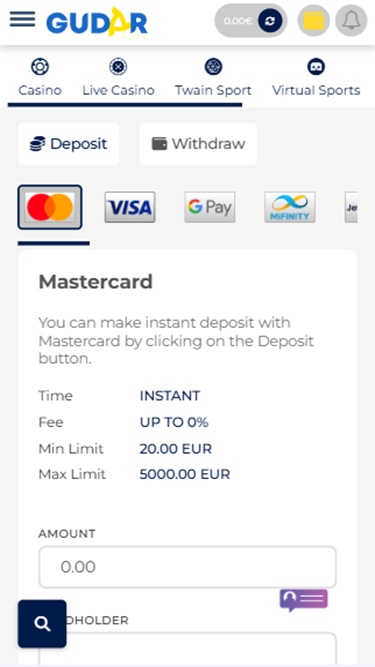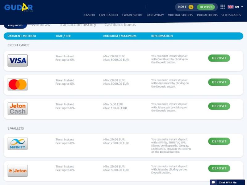 以下に、入金および出金オプションを含む、Gudar Casino のさまざまな銀行オプションを示します。
