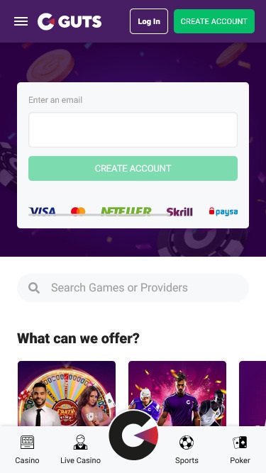 Guts Casinoは2013年にGuts Gaming Ltdによって設立され、豊富なゲームラインナップ、迅速な出金、そして24時間対応のライブサポートを提供することで、瞬く間にその名を馳せました。迅速な出金は同カジノの特徴の一つで、同社は常に2時間以内の出金を誇っており、その分野では同社の立場を端的に表すスローガンを掲げています。そのスローガンとは?「なぜ待つのか?」カジノ情報