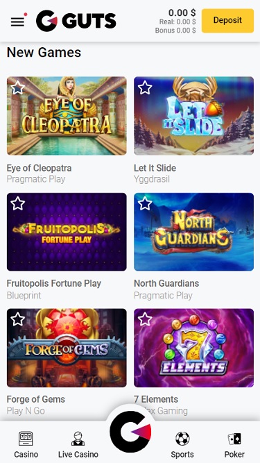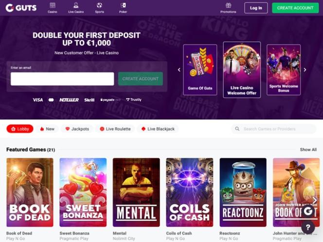 Gutsの最大の利点の一つは、豊富なゲームラインナップです。これらのゲームは Microgaming, Net Entertainment, BetSoft, 1x2gaming, Barcrest, Big Time Gaming, ELK Studios, Evolution Gaming, Genesis Gaming, iSoftBet, lightningboxgames, Novomatic, Oryx, Play'n GO, Quickspin, Relax Gaming, Thunderkick, Yggdrasil, Endorphina, Wazdan, Stakelogic, Pragmatic Play, Nolimit City, Red Tiger Gaming, Skillzzgaming, Fantasma Games, FunFair, Kalamba, Triple Edge Studios, Concept Gaming, Stormcraft Studios, Pocket Games Soft, All41 Studios, Gameburger Studios, Neon Valley Studios, Golden Rock Studios, Spearhead Studios, SpinPlay Games, Games Global, 2by2 Gaming, Bally Technologies, bluberi, Blueprint Gaming, Greentube, NextGen, NYX Interactive, Push Gaming, WMS, Inspired Gaming, Spigo, SG Interactive, Red7Mobile, Scientific Games, Reel Time Gaming, Authentic Gaming, Foxium, Just For The Win, PearFiction Studios, Wild Streak Gaming, Slingshot Studios, Fortune Factory Studios, 4ThePlayer, AvatarUX, High 5 Games, ReelPlay, Alchemy Gaming, Snowborn Games, Hacksaw Gaming, Max Win Gaming, Gold Coin Studios, Bang Bang Games, Slotmill, SilverBack Gaming, Eurostar Studios, Aurum Signature Studios, Lucksome Gaming, Area Vegas, Kitsune Studios and Sneaky Slotsによって提供されています。これらの開発元全てを考慮すると、Gutsは数百ものゲームをプレイヤーに提供しています。これらのゲームは、スロット、テーブルゲーム、ビデオポーカー、アーケードゲームなど多岐にわたります。Blackjack