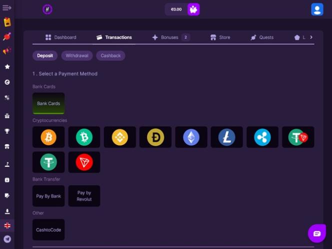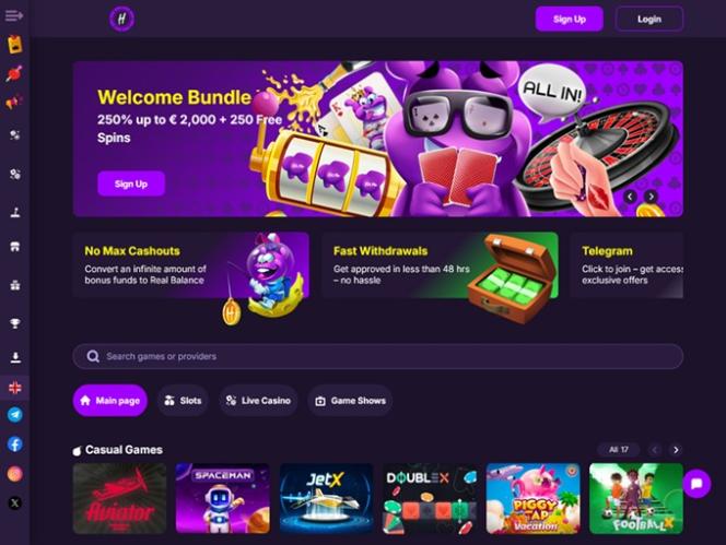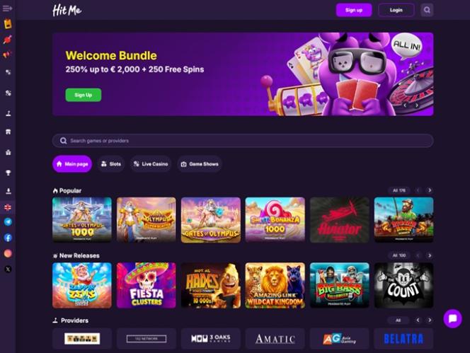 2024年に登場したHit Me Bet Casinoは、オンラインスロット、テーブルゲーム、ライブディーラー、クラッシュゲーム、スクラッチカード、ビンゴ、バーチャルスポーツなど、豊富なゲームラインナップをプレイヤーに提供し、オンラインギャンブルコミュニティに瞬く間に華々しく参入しました。さらに、魅力的なプロモーションプランとロイヤルティプログラムも提供しています。また、ビットコインやイーサリアムなどの様々な暗号通貨にも対応しているため、迅速な出金など、暗号通貨のメリットを享受できます。