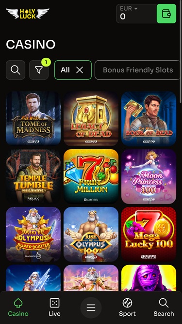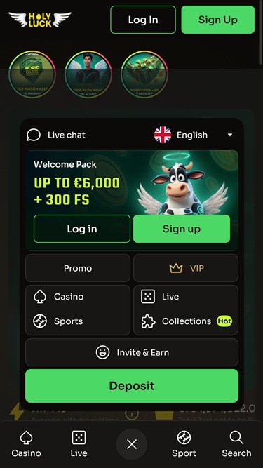 カジノゲームに加え、Holyluckにはスポーツベッティング専用のページも用意されており、毎日数百ものスポーツやeスポーツイベントに賭けることができます。スポーツブックには、いつでも賭けに参加したい方のためのライブベッティング機能など、必要な機能がすべて備わっています。
