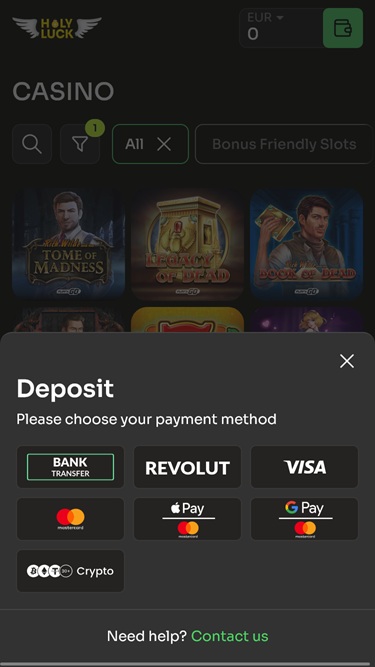2025年に設立されたHolyluckは、数千ものオンラインスロット、ライブディーラー、テーブルゲーム、クラッシュゲームなど、包括的なギャンブル体験を提供するオンラインカジノです。充実したプロモーションとボーナスもご用意しています。主にドイツ、ベルギー、アイルランドからのプレイヤーを受け入れています。