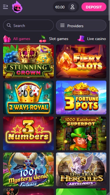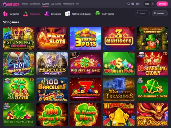 スロットには、Stunning Crown、Fiery Slots、1001 Mystery Genie Fortunes、20 Blazing Clover、12 Animals、Age of Legends、Anubis Wrath、Barbarossa Revenge、Turbo Play、White Witch、Bank Run、Book Hotfire、Lizard Loot、Coins of Ra、Alibi、Boom Farm、13th Trial Hercules、Blood Club、Cauldron、Frozen Ageなどがあります。