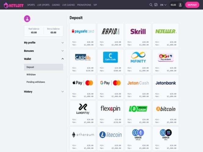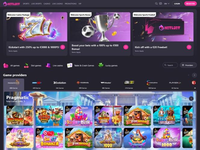 HotLoot Casinoのサイトにアクセスしてすぐに目に飛び込んできたのは、サイト全体の見た目の美しさでした。グラフィック部門は、見た目に美しい配色を巧みに採用しているようです。それだけでなく、どのデバイスを使用してもインターフェース全体が非常にスムーズに動作します。