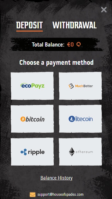 House Of Spades カジノのキャッシャーは国によって異なりますが、どのギャンブル管轄区域から来ているかに関係なく、暗号通貨バンキング オプションを含むさまざまな支払い方法をサポートしています。