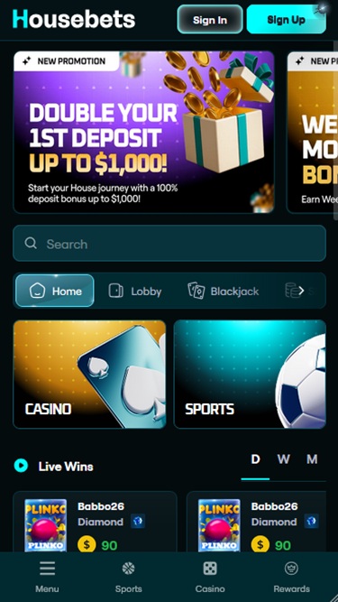 Housebets Casinoのビジュアルはシンプルながらも効果的です。控えめながらも、非常に現代的な雰囲気を醸し出しています。