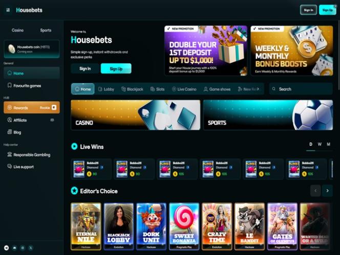 Housebets Casino は、多彩なゲームライブラリを提供する世界志向のオンライン カジノであり、ライブ ベッティングをサポートするなど、さまざまな機能を備えた総合的なスポーツ ブックとしても機能します。