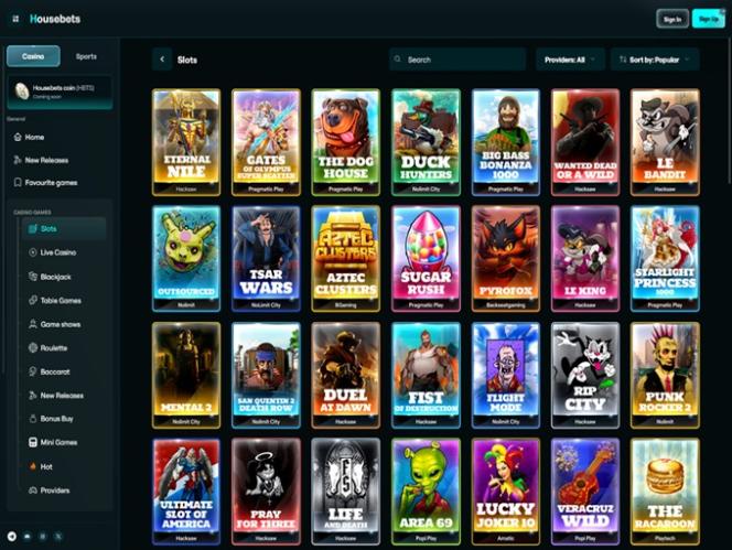 Housebets Casino のゲーム ライブラリには、約 3,000 種類のオンライン スロット リリースが収められています。この素晴らしいオンライン ギャンブル サイトでプレイできる最も人気のあるゲームから、よりニッチなオンライン カジノ ゲームまで、幅広く多彩なゲームが揃っています。