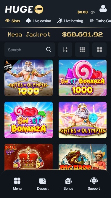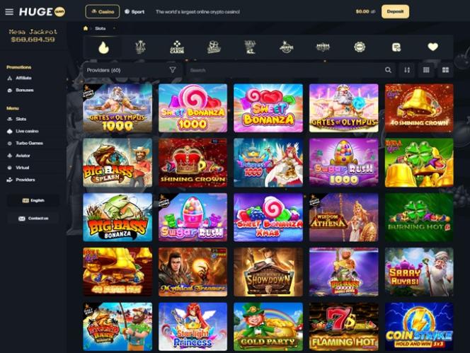 HugeWin Casinoのスロットマシンの品揃えは驚くほど豊富です。きっとあなたにぴったりのゲームが見つかるはずです。Sweet Bonanza、9 Coins、Rich Wilde and the Tome of Madness、Starlight Christmas、Gates of Olympus、TNT Bonanza、100 Power Hot、Book of Demi-God V、5 Sevens、Blazing Coins 100、Green Chilli 2、Art of Gold、Midas Fortune、Asgardian Rising、Buffalo King Megaways、10000 Wishes、Blazing Wilds Megawaysといった人気タイトルをぜひお試しください。