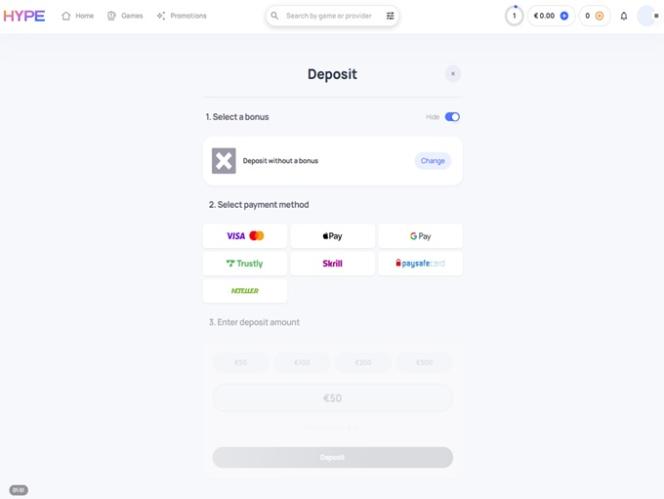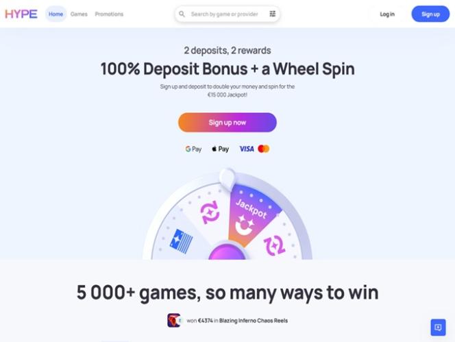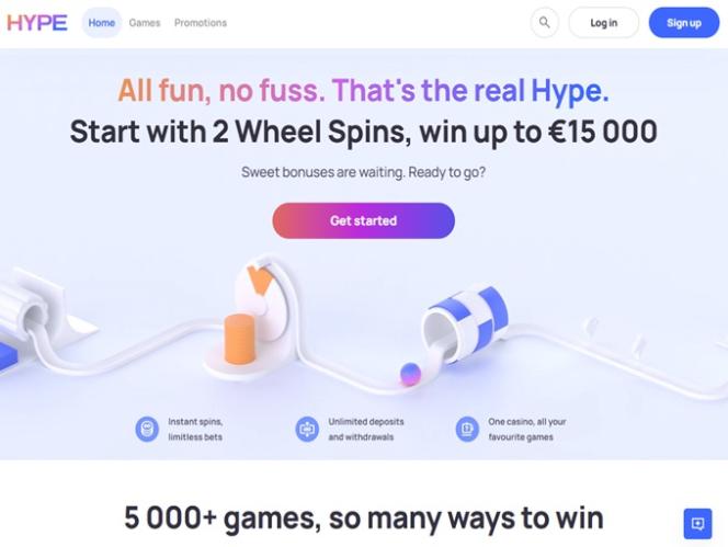 デンマークのプレイヤーにとって、ぜひチェックしていただきたいもう 1 つの興味深いデンマーク対応オンライン カジノがあります。Hype Casino は一見するとすっきりと整理されているように見えます。
