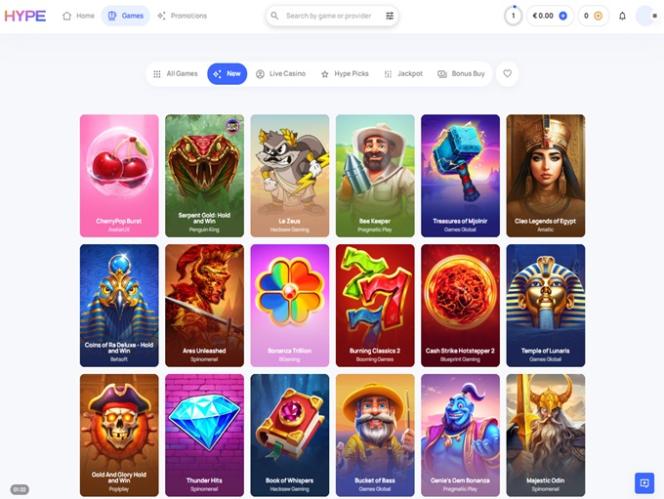 Hype Picksセクションには、運営会社がカジノ会員におすすめするトレンドタイトルが満載です。利用可能なゲームの一部をご紹介します:SWOLL、Shady Lady、Dig It、Pirots 4、Gods Gone Wild、Sweet Bonanza Super Scatter、777 Hot Reels: Supercharged、3 Buzzing Wilds、Miami Mayhem、TikiPop Spooky Temples、Fruit Super Nova、Rich Wilde and the Tome of Madness、Duel at Dawn、Razor Returns、Big Bass - Secrets of the Golden Lake、Le Zeus、CherryPop Deluxeなど。