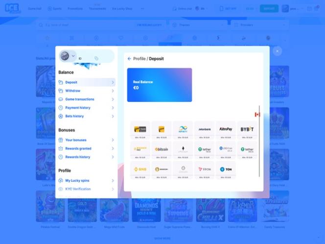 IceCasinoは Net Entertainment, Playtech, BetSoft, 1x2gaming, Amatic Industries, ELK Studios, Evolution Gaming, Ezugi, Habanero Systems, iSoftBet, Novomatic, Oryx, Play'n GO, Quickspin, Relax Gaming, Thunderkick, Yggdrasil, Endorphina, Booming Games, PlayPearls, Stakelogic, Pragmatic Play, Nolimit City, Felt Gaming, Red Tiger Gaming, LuckyStreak, Spinomenal, Felix Gaming, Fugaso, Belatra Games, FunFair, Kalamba, Mobilots, Platipus Gaming, Nucleus Gaming, BGAMING, Fazi, Evoplay, OneTouch, Pocket Games Soft, Bulletproof Games, CQ9 Gaming, Mascot Gaming, TVBet, NetGame Entertainment, Spearhead Studios, Swintt, TrueLab Games, Mancala Gaming, 7Mojos, SmartSoft Gaming, Atmosfera, Blue Guru Games, Lady Luck Games, Holle Games, Eurasian Gaming, Games Global, Amusnet Interactive, bluberi, Blueprint Gaming, CT Interactive, Greentube, Igrosoft, Push Gaming, Tom Horn Gaming, Gamomat, Mr Slotty, Reel Time Gaming, Zitro, Reflex Gaming, Wild Streak Gaming, Golden Hero, 4ThePlayer, AvatarUX, High 5 Games, Groove Gaming, ReelPlay, Japan Technicals Games, Black Pudding Games, Hacksaw Gaming, Bang Bang Games, Gamzix, Arcadem, Peter And Sons, Absolute Live Gaming, Lucksome Gaming, Gamebeat, TaDa Gaming, Amigo Gaming, Apparat Gaming, Spribe, 1spin4win, 5Men Gaming, Bet2Tech, Atomic Slot Lab, Givme Games, Indigo Magic, Popiplay, Zillion Games and Playziaを採用しており、ゲームはインターネットブラウザからプレイできるウェブベースのプラットフォームを通じて提供されます。モバイルサイトも利用可能で、スマートフォンやタブレットからゲームをプレイできます。Blackjack