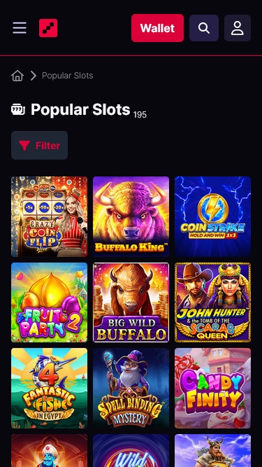 利用可能なコンテンツはゲーム名またはゲームプロバイダー名で検索できるため、特定のタイトルを探している場合はすぐに見つけることができます。これは、外出先でギャンブルを楽しみたい場合に特に便利です。