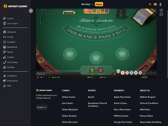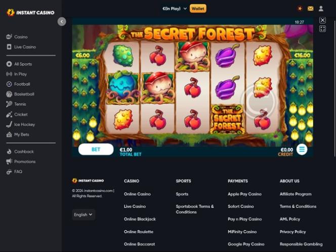 魅力的なスロット、ライブゲーム、テーブルゲームに加え、Instant Casinoではサッカー、バスケットボール、テニス、クリケット、アイスホッケーなど、豊富なスポーツベッティングを提供しています。このカジノは、スポーツファンの皆様に最新のスコア情報や世界リーグの試合情報、イベント情報を提供しています。