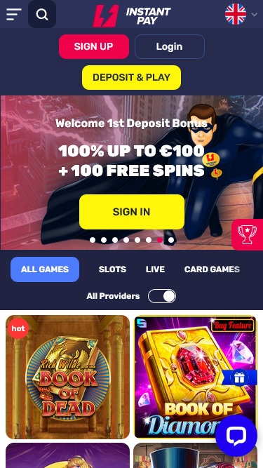 InstantPay Casinoは Microgaming, Net Entertainment, Playtech, BetSoft, Amatic Industries, Evolution Gaming, iSoftBet, Play'n GO, Quickspin, Relax Gaming, SOFTSWISS, Thunderkick, Yggdrasil, Endorphina, Wazdan, Betgames, Booming Games, Pragmatic Play, Red Tiger Gaming, Spinomenal, Triple Edge Studios, BGAMING, Northern Lights Gaming, Stormcraft Studios, Electric Elephant Games, All41 Studios, Gameburger Studios, Pulse 8 Studios, Neon Valley Studios, Swintt, SpinPlay Games, Holle Games, Buck Stakes Entertainment, Games Global, Amusnet Interactive, Ash Gaming, Push Gaming, Foxium, Just For The Win, PearFiction Studios, Fortune Factory Studios, 4ThePlayer, AvatarUX, Crazy Tooth Studio, Rarestone Gaming, Snowborn Games, Boomerang Studios, Max Win Gaming, Gold Coin Studios, Bang Bang Games and SilverBack Gamingを採用しており、ゲーム配信にはWebベースのプラットフォームを使用しています。そのため、お気に入りのブラウザでサイトが読み込まれます。洗練されたデザインと操作性で、数分以内に起動してプレイできます。モバイルサポートも提供されており、スマートフォンやタブレットからギャンブルをお楽しみいただけます。Blackjack