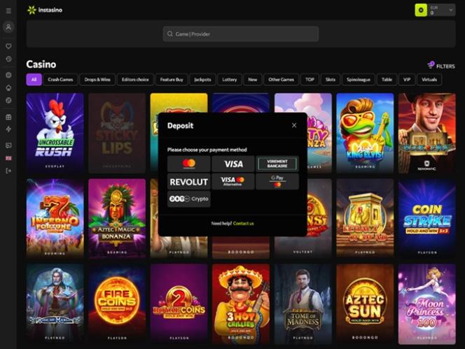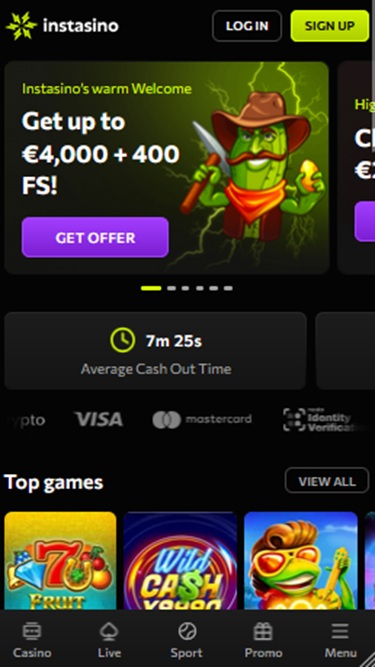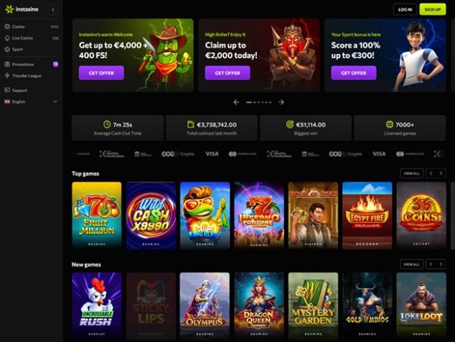 従来の支払いオプションを好む場合でも、暗号通貨ギャンブルに切り替える場合でも、Instasino カジノでは、 Cardano 、Bitcoin Cash、Bitcoin、 Dash 、Dogecoin、Ethereum、Litecoin、 Solana 、Tron、USD Coin、Tether、Ripple など、さまざまな入金および出金オプションをご利用いただけます。