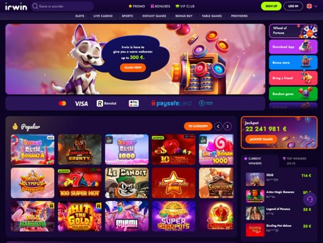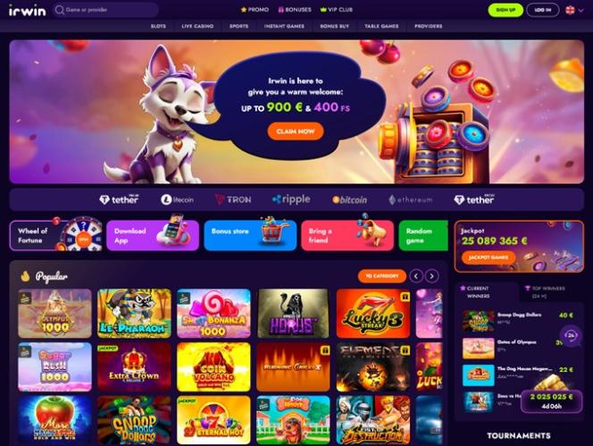 2024年に設立されたIrwin Casinoは、リアルマネースロット、テーブルゲーム、ライブディーラー、クラッシュゲーム、さらには独立したスポーツブックセクションなど、多様なオプションをプレイヤーに提供する現代的なギャンブルサイトです。数々のプロモーション、ボーナス、トーナメント、VIPプログラムに加え、様々な暗号通貨を決済手段として受け入れています。