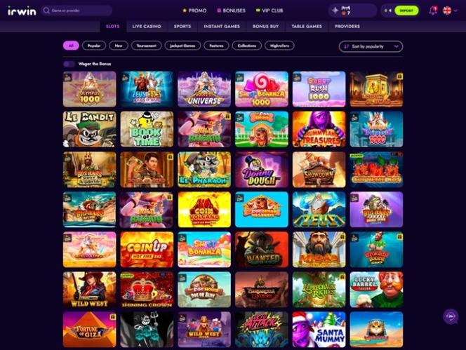 魅力的な外観に加え、Irwin Casinoはプレイヤーに幅広いゲームセレクションを提供することを目指しています。オンラインスロット、ライブディーラー、テーブルゲーム、クラッシュゲームなど、あらゆるゲームが揃っており、各ジャンルの豊富なバリエーションが揃っているので、飽きることがありません。