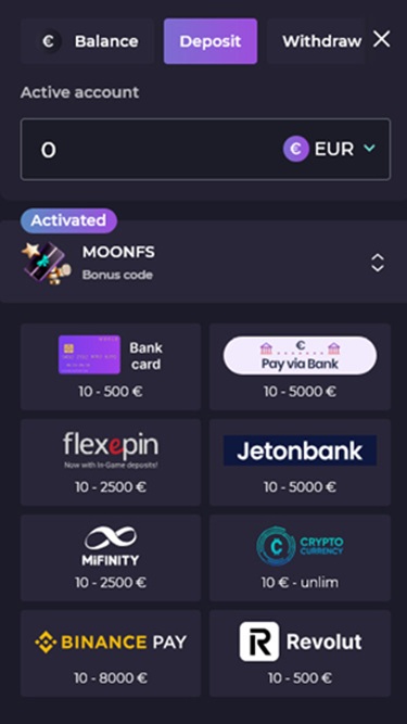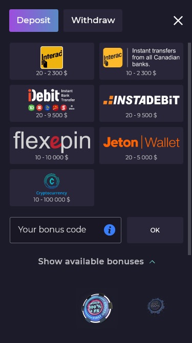 このオンラインゲームブランドは、カナダ、ロシア、ウクライナのプレイヤーを対象としています。最新技術を駆使し、非常に美しい外観で構築された、魅力的で未来的なカジノプラットフォームを採用しています。