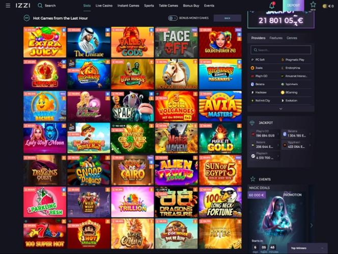 Izziは、人気カジノソフトウェア開発会社が制作した4000以上のオンラインカジノゲームを提供しています。このギャンブル場では決して飽きることはありません。