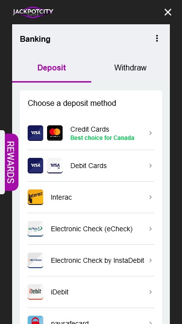 Jackpot City Casinoは Microgaming, Net Entertainment, Pragmatic Play, Triple Edge Studios, Northern Lights Gaming, Stormcraft Studios, Switch Studios, All41 Studios, Gameburger Studios, Pulse 8 Studios, Neon Valley Studios, SpinPlay Games, Real Dealer Studios, GONG Gaming, On Air Entertainment, Buck Stakes Entertainment, Games Global, Blueprint Gaming, Old Skool Studios, Foxium, Just For The Win, PearFiction Studios, Wild Streak Gaming, Slingshot Studios, Fortune Factory Studios, Crazy Tooth Studio, Alchemy Gaming, Snowborn Games, Hacksaw Gaming, Gold Coin Studios, Half Pixel Studios, Eurostar Studios, Aurum Signature Studios, Area Vegas, Spribe, Circular Arrow, HammerTime Games, INO Games, Nailed It! Games, Neko Games, Reel Kingdom, Oros Gaming and Ready Play Gamingによって運営されており、数百ものゲームを顧客に提供しています。カジノはウェブベースのプラットフォームとダウンロード可能なソフトウェアクライアントの両方でご利用いただけます。スマートフォンやタブレットからプレイしたい方には、モバイルカジノもご利用いただけます。