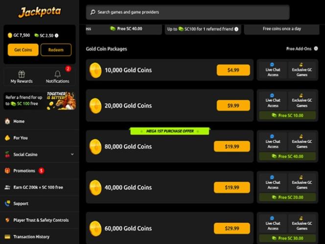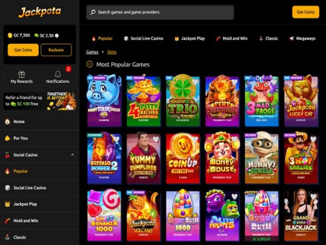 Jackpotaは、オンラインスロット、ライブディーラー、スリンゴゲームなど、カジノ風の充実したゲームライブラリをプレイヤーに提供するソーシャルギャンブル&懸賞サイトです。このゲームプラットフォームには、プレイヤーが購入することなく無料で参加できる、日替わりプロモーション、ジャックポット、イベント、景品など、豊富なコンテンツが用意されています。