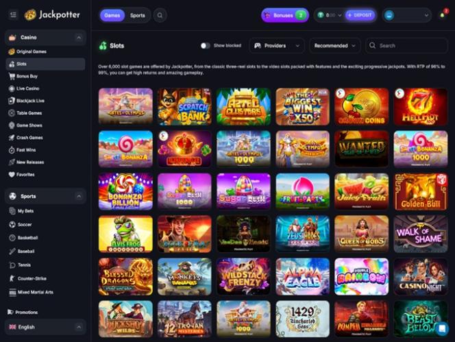 Jackpotter Casino では 6,000 種類以上のスロット ゲームが提供されており、ギャンブラーは昔ながらのスロットからエキサイティングな機能を備えた最新のビデオスロットまで、さまざまなゲームを選択できます。