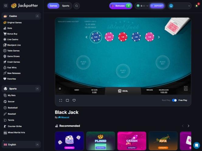 Jackpotter Blackjack (Pragmatic Play)拡大