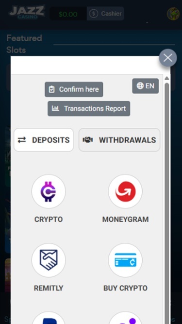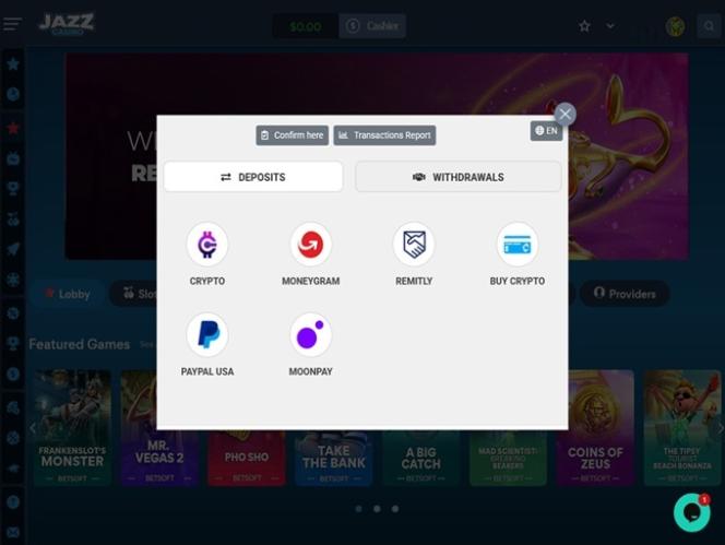 以下に、入金および出金オプションを含む、Jazz Casino のさまざまな銀行オプションを示します。